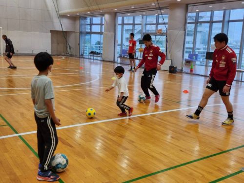 社員のお子さんも一緒にボールを使ってフットサルを体験